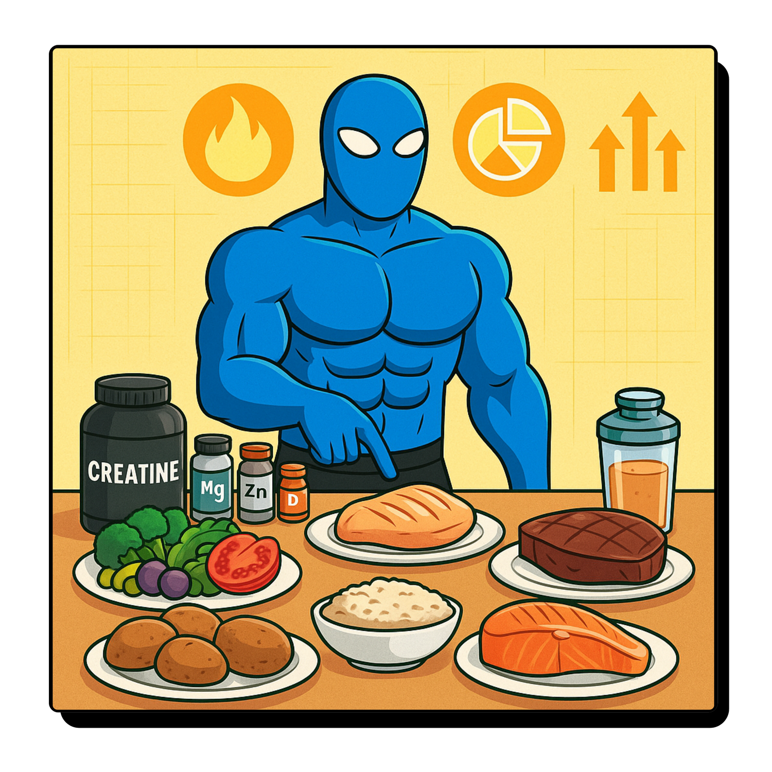 Learn how to fuel muscle gain by understanding calorie surpluses, deficits, and “main-gaining,” along with a clear breakdown of macronutrients and the most effective supplements for strength and growth