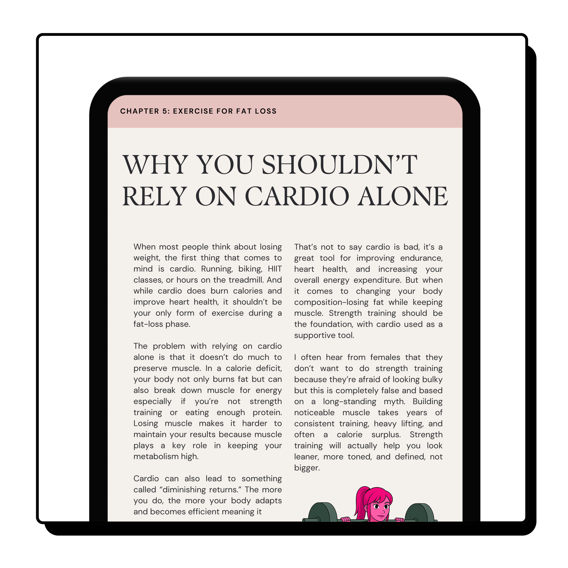 The final chapter ties everything together by helping you stay on track long term. You’ll learn how to build discipline, push through plateaus, and develop the right mindset for sustainable success. Fat loss isn’t a sprint, it’s a journey. This chapter shows you how to keep going until you reach your goal.